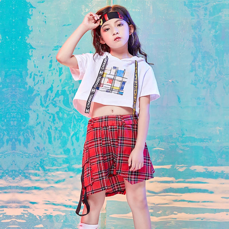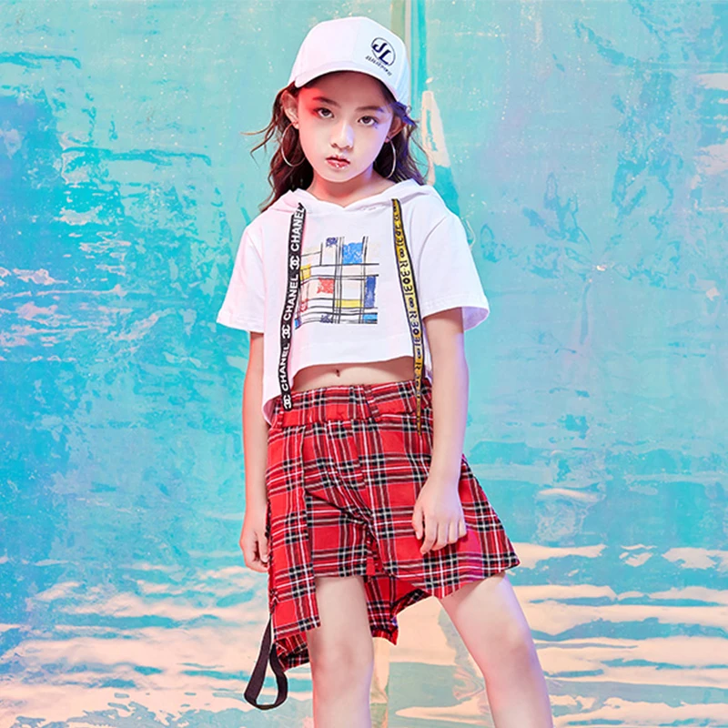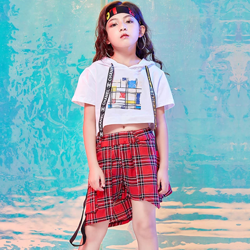 Girls Jazz Dance Costumes White Hooded Short Sleeve Top Kids Hip Hop Street Dancing Clothes Childre