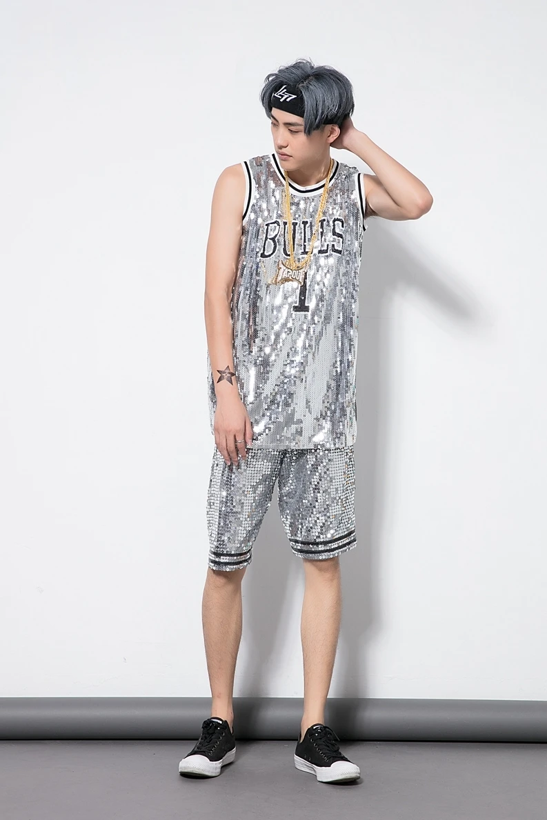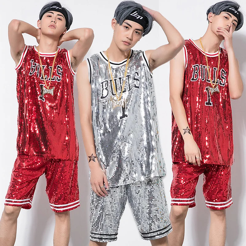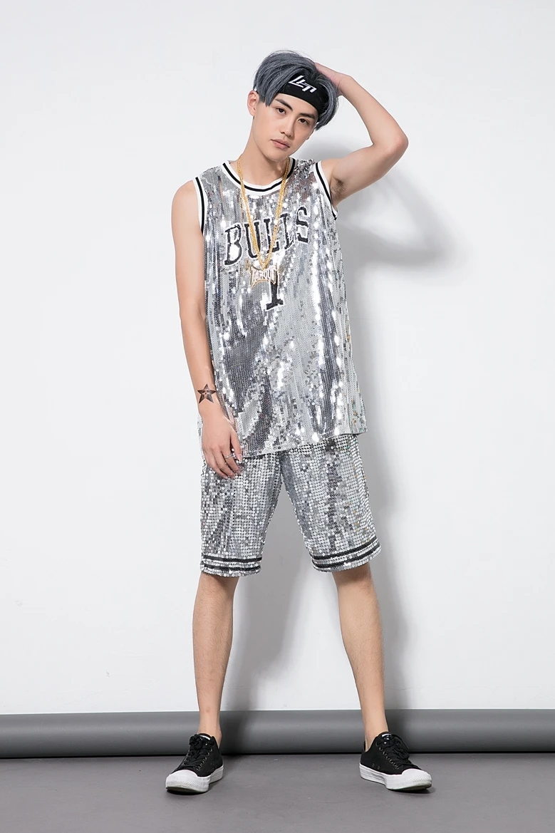 New men's performance suit Jazz Modern Dance Costume sequins basketball cheerleading gymnastics ves